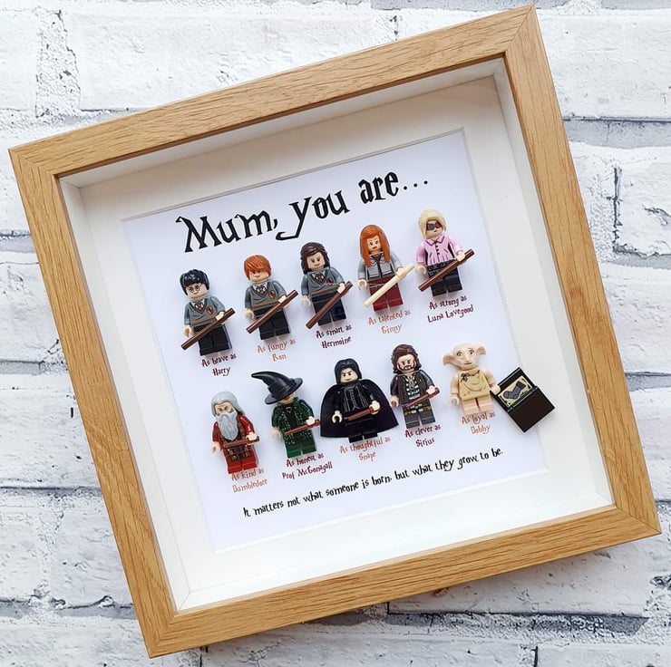 Each frame includes 10 minifigures and you can change the recipient name plus add up to two lines of your own text to the bottom to make this a truly personal gift.