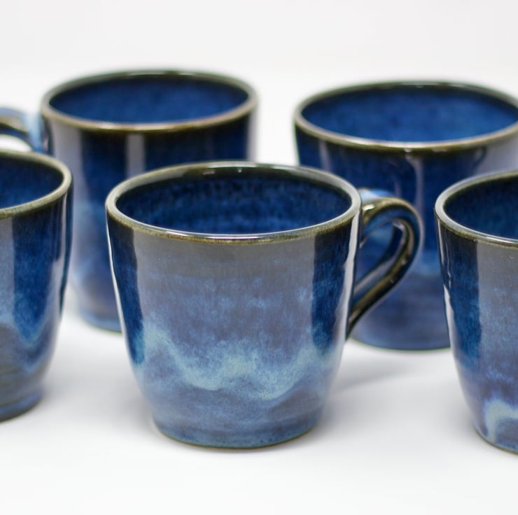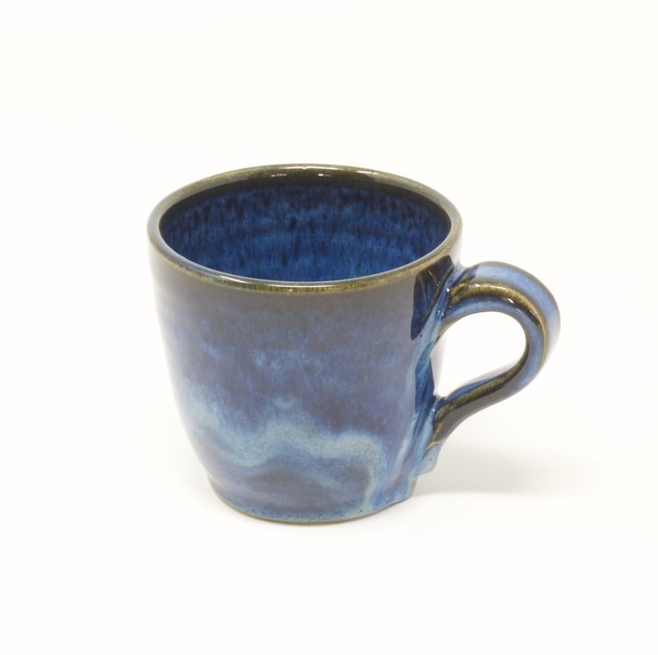 If you like your coffee, you'll love drinking out of these! The way the glaze floats on these cups means each one comes out of the kiln looking unique. Fired to c1230 degrees which is a stoneware temperature and makes the cups more durable.