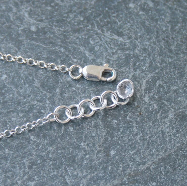 The bracelet fastens with a lobster clasp and has a variable fastening position so that it will fit a wrist size ranging from 6.5 inches to 7.5 inches. It can be difficult to give a bracelet as a gift if you are unsure of a size but this adjustable bracelet eliminates that problem. At the end of the adjustable fastening I have added another small lichen to add some interest.