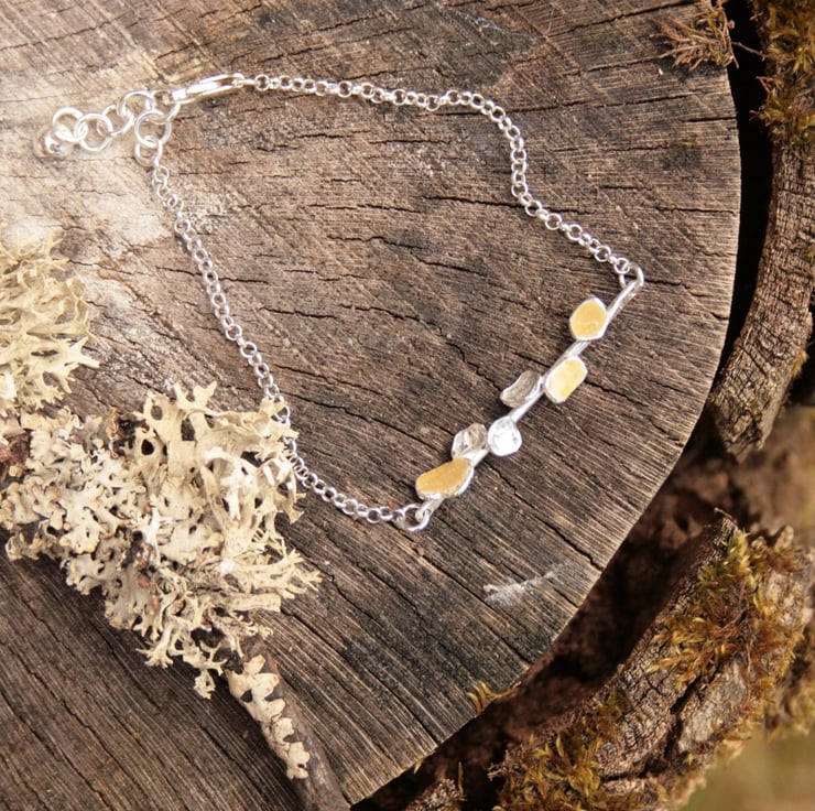 Sterling silver lichen bracelet, nature inspired jewellery, dainty bracelet