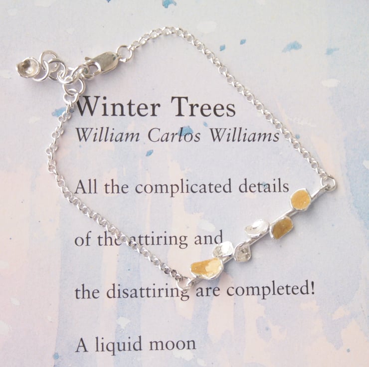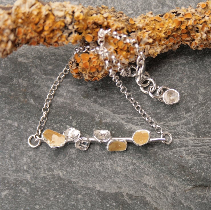 This dainty silver bracelet was inspired by lichen and the way in which the little lichen cluster together on branches. It was handmade by myself from sterling silver.