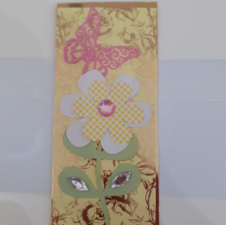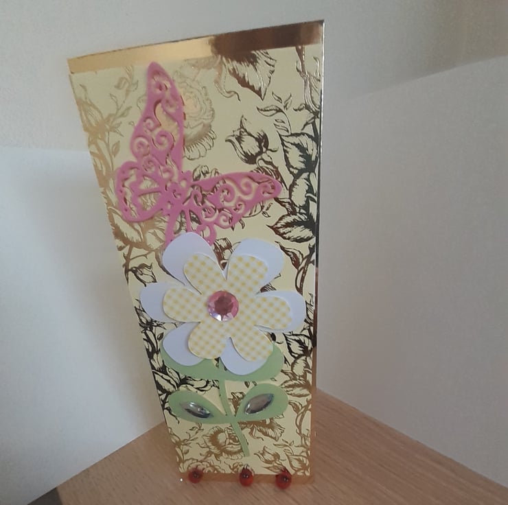 This listing is for an elegant slim card which is ideal for a birthday, to say hello or just because. The slim card can also be used as a money wallet. The inside of the card is left blank for you to add your own message.