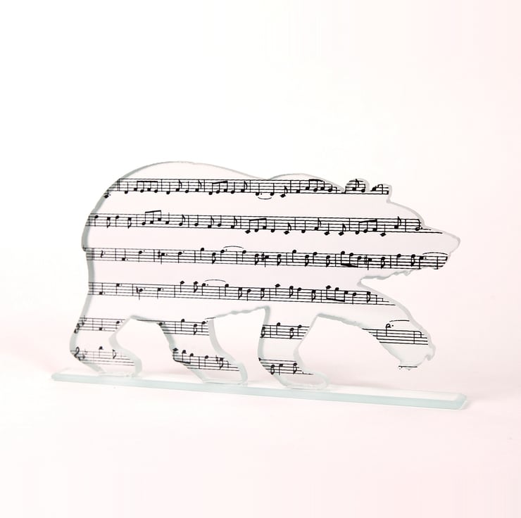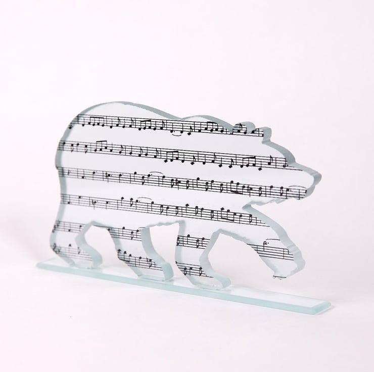 It has then been screen-printed by hand with the musical score for The Teddy Bear's Picnic using black glass enamel, which is fired into place making it waterproof and resistant to sunlight. All my kiln-fired pieces are carefully digitally annealed and cooled for strength and safety.