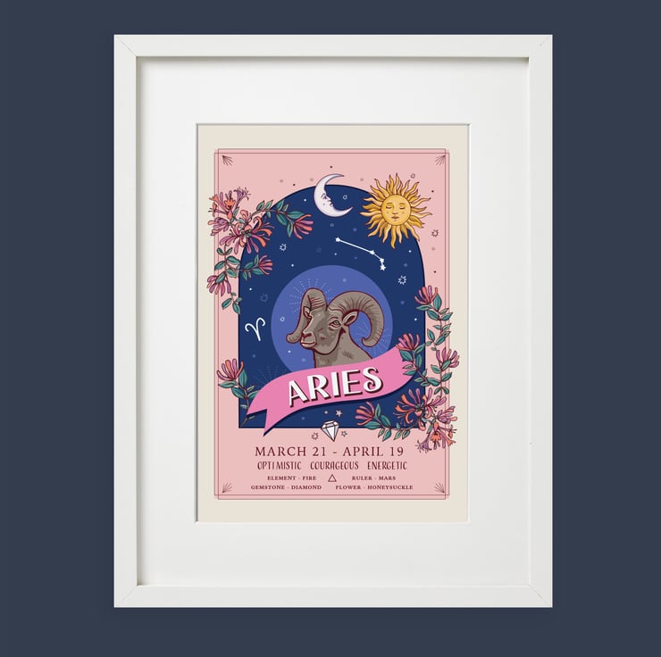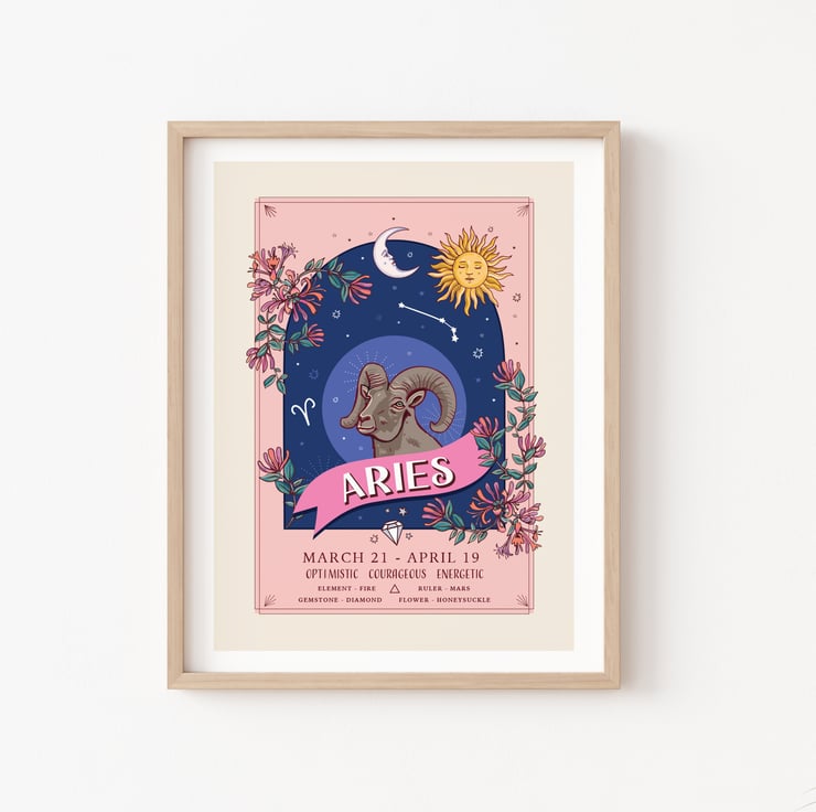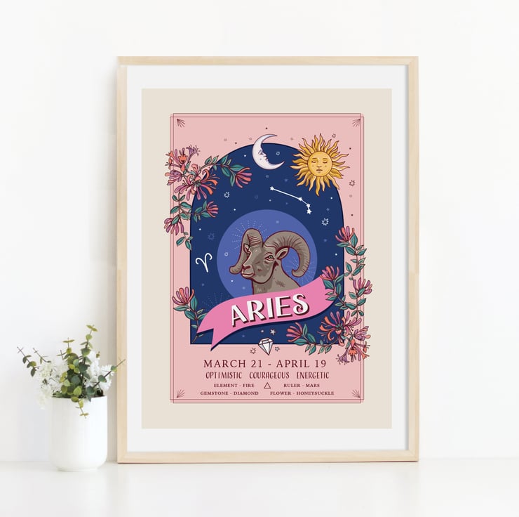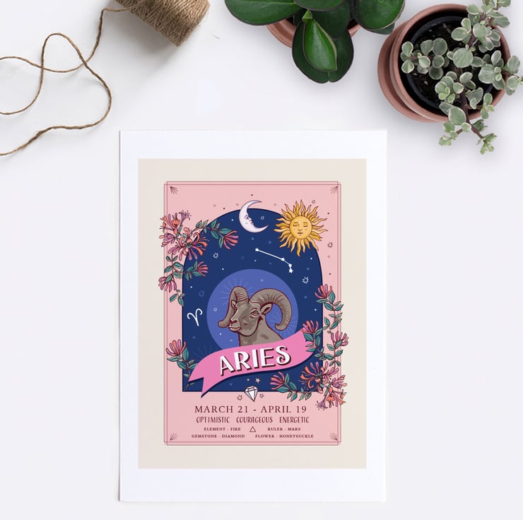 An unframed wall art print from my original illustration. Part of my 'Zodiac Signs and Flowers' collection it has lots of information about each star sign.