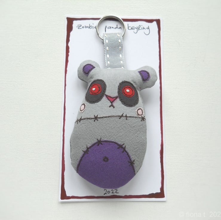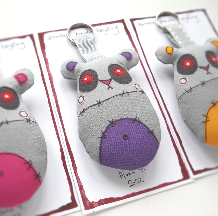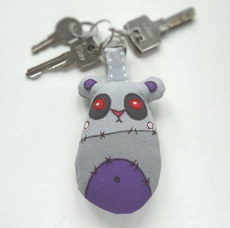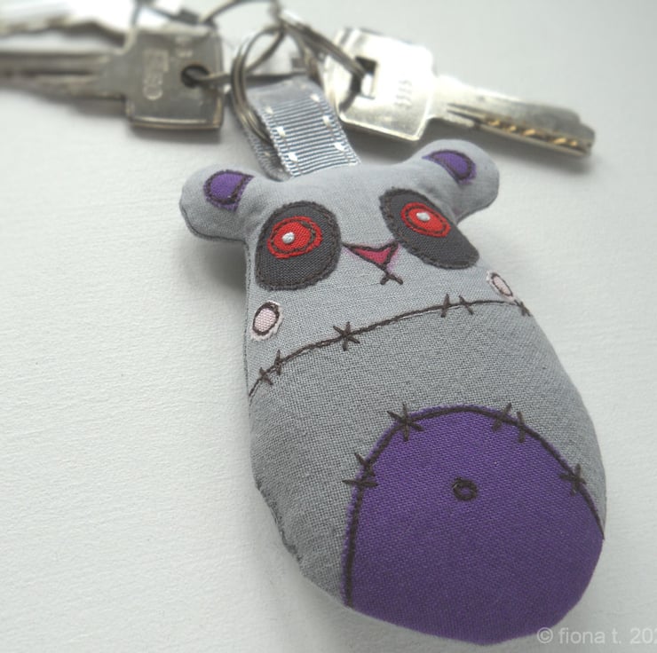 freehand embroidered zombie panda bag charm or keyring - PURPLE