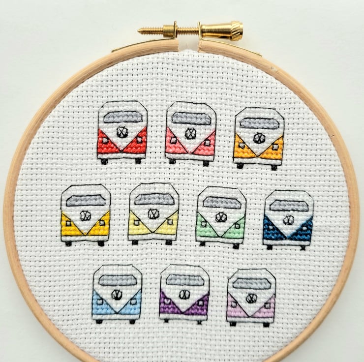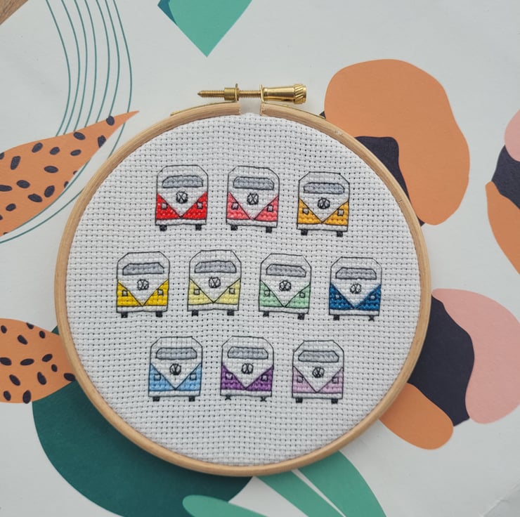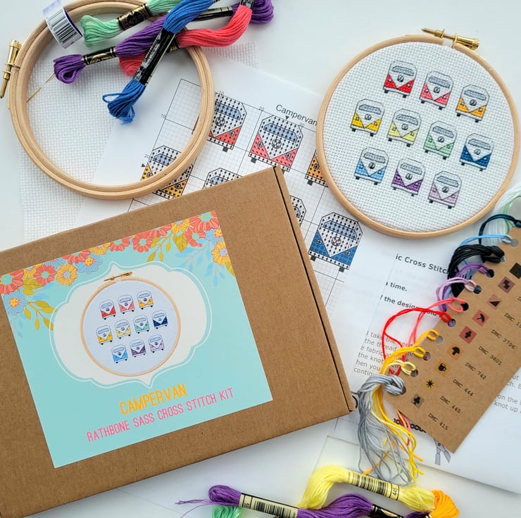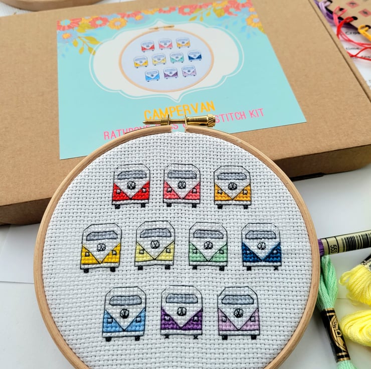 A complete cross stitch kit to sew your own Campervan design - perfect for yourself or as a gift.