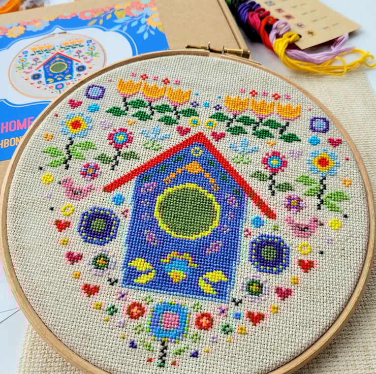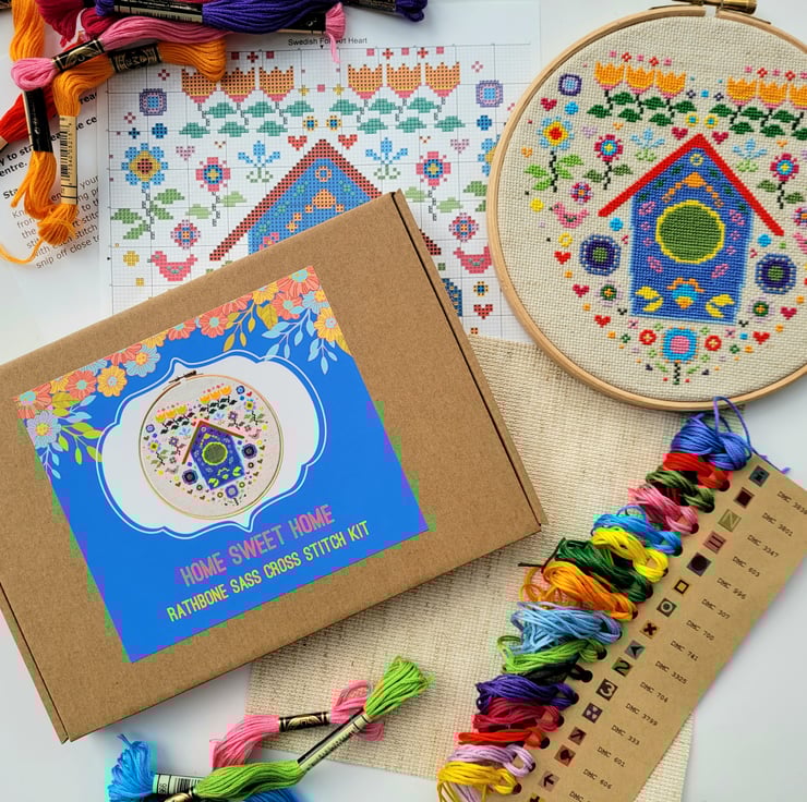 A complete cross stitch kit to sew your own Home Sweet Home design - perfect for yourself or as a gift.