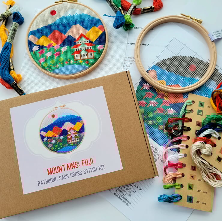A complete cross stitch kit to sew your own Mountains Fuji design - perfect for yourself or as a gift.