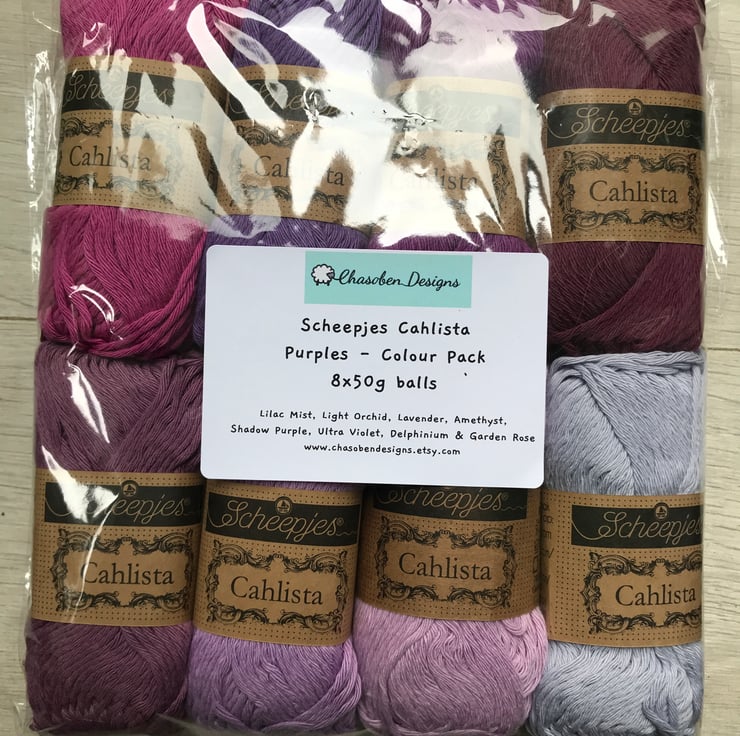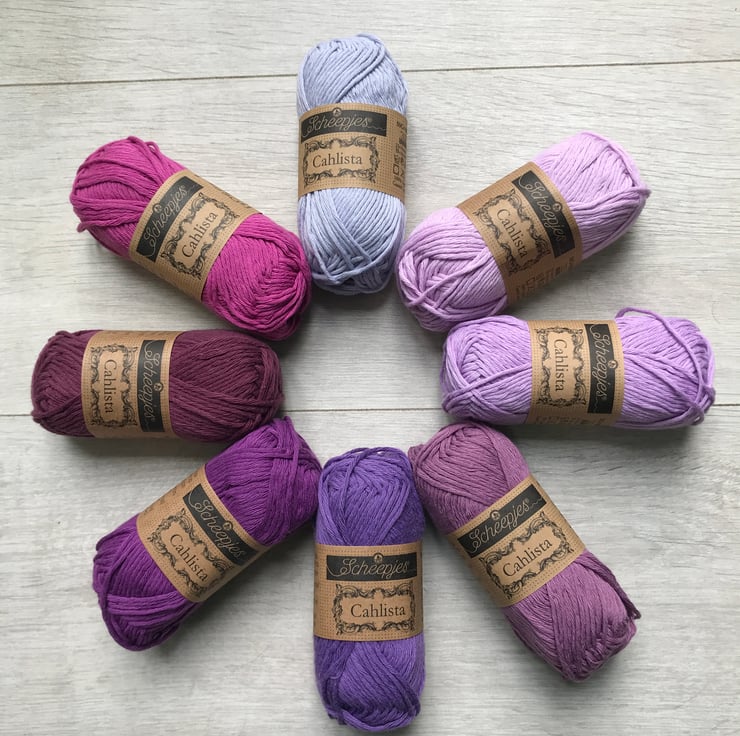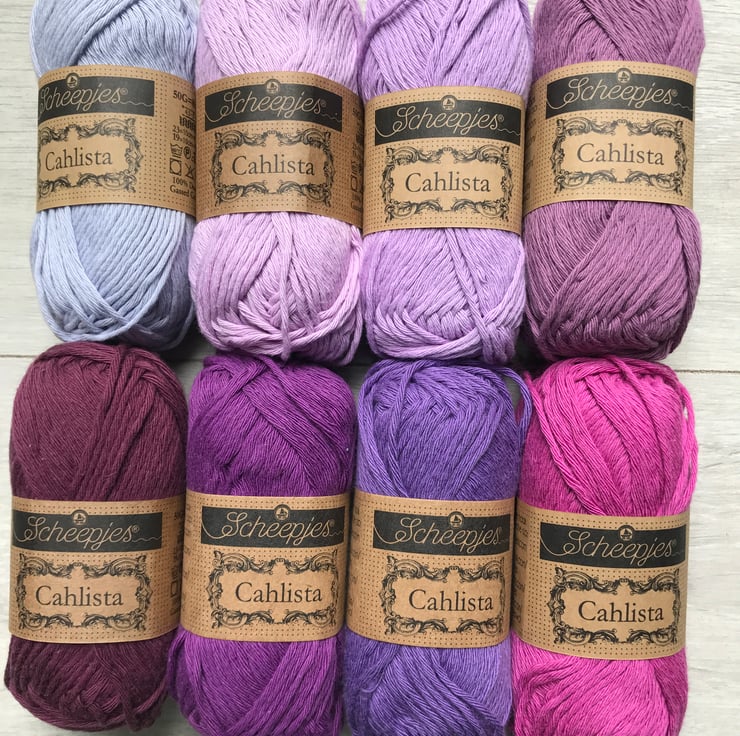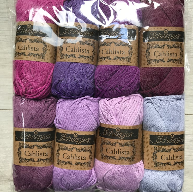 In this 400g pack of yummy colours, there are 8 x 50g balls of Scheepjes Cahlista.