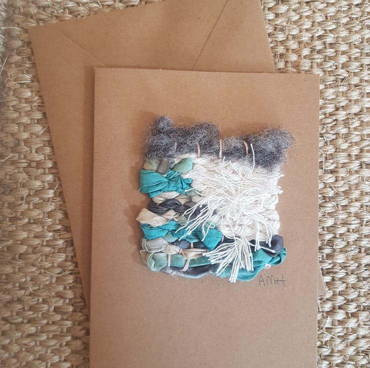 I have a passion for natural fibres and beautiful vintage and recycled natural fabrics. I wanted to use these materials to create some unique woven pieces. At the same time, I needed a special card that I had put my time and love into, for a close friend, and started creating these cards. They are all individual and made with love and care in Wales.