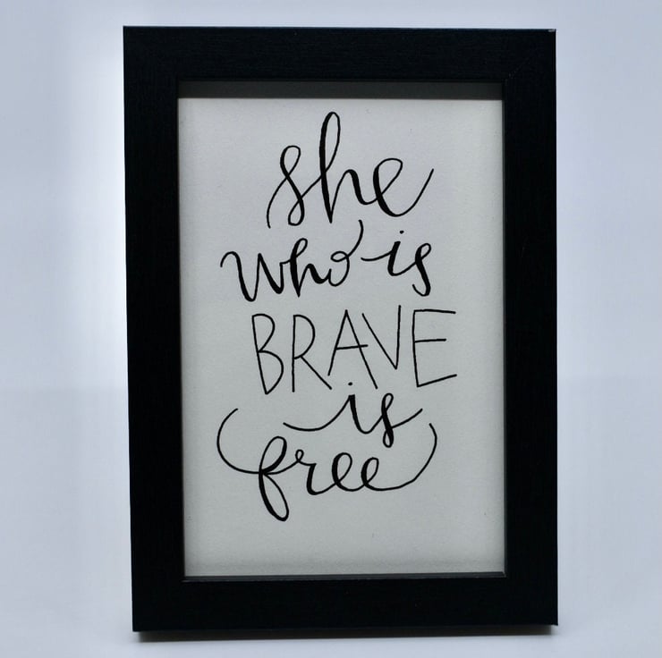 She Who Is Brave Is Free 4x6" Framed art.