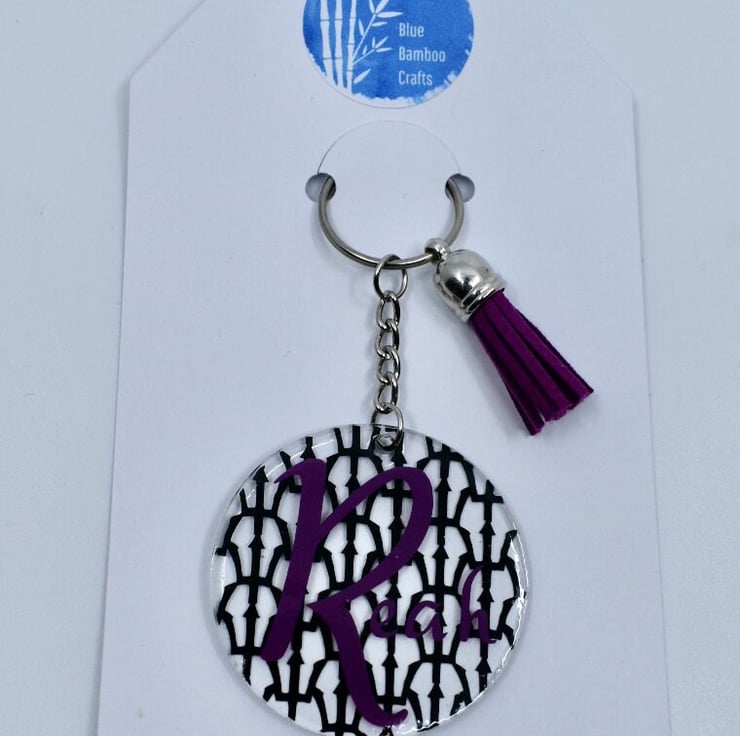 Beautiful and simple personalised keyrings. 5cm diameter acrylic disc.