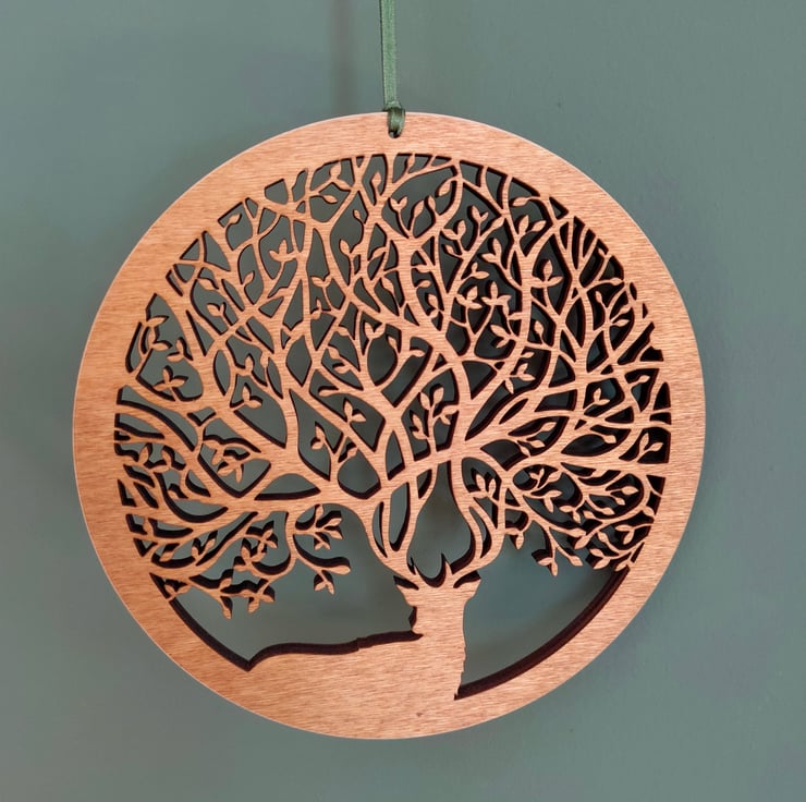 Laser-cut and hand-finished from FSC certified poplar plywood with a ribbon to hang the piece.