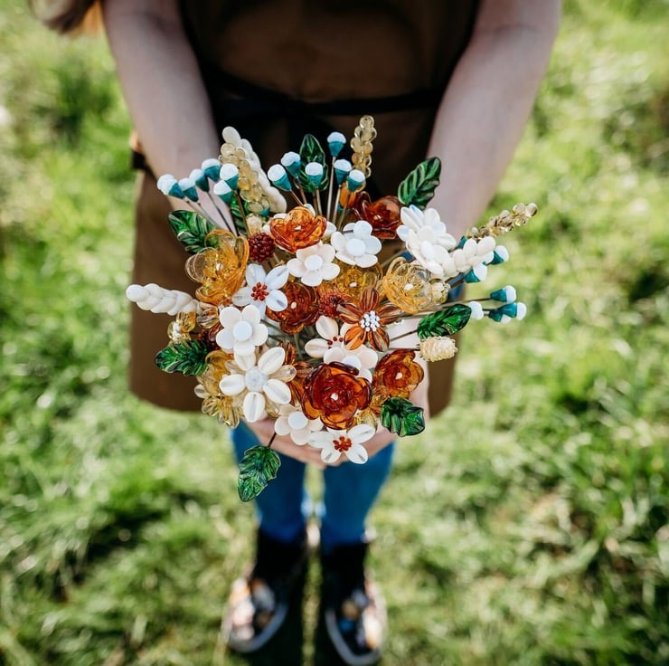 Once complete each stem is fired in a kiln to 'anneal', this strengthens the glass whilst cooling it. The whole process takes around 10 hours from glass rod to beautiful bloom.