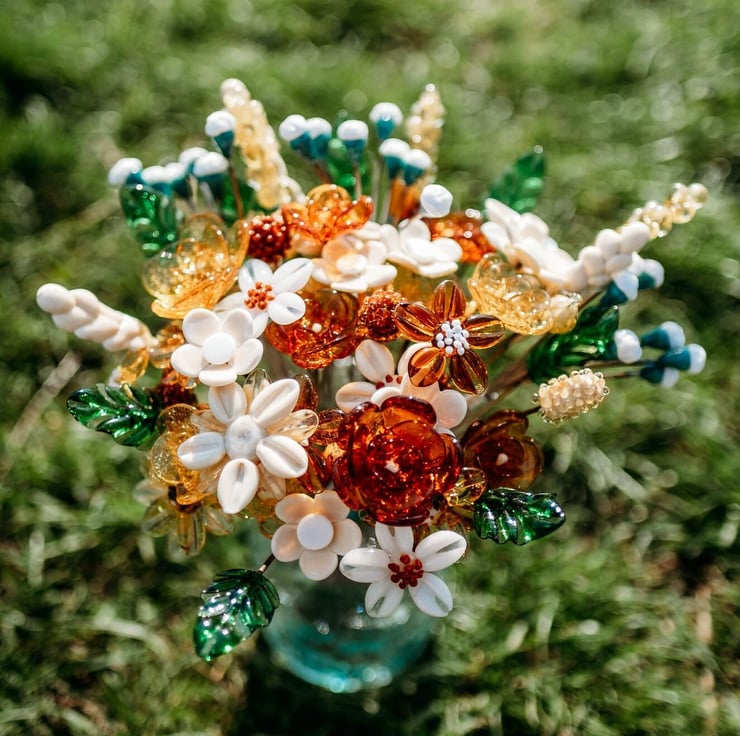 This piece truly is a focal piece of art for your home. I individually handcrafted every petal of each flower from molten glass in a 1200 degree flame.
