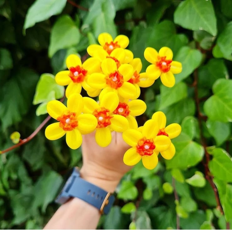 I individually handcraft every petal of each flower from molten glass in a 1200 degree flame. Once complete each stem is fired in a kiln to 'anneal', this strengthens the glass whilst cooling it. The whole process takes around 10 hours from glass rod to beautiful bloom. Checkout the listing video to see a little more of the process.