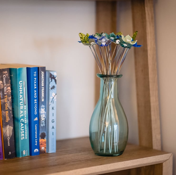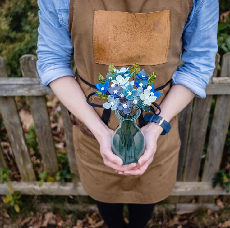 Each flower stem measures approximately 25cm long, with the heads of the flowers varying from 2cm-5cm depending on the style and design. Choose an alternative length of stem for your flowers using the personalisation box below. If nothing is requested, 20cm will be sent out as a default. Every flower is individually handmade, using stainless steel wire and molten glass. Each petal is added, one at a time, shaping the glass to create the perfect bloom before placing it into a kiln to anneal.