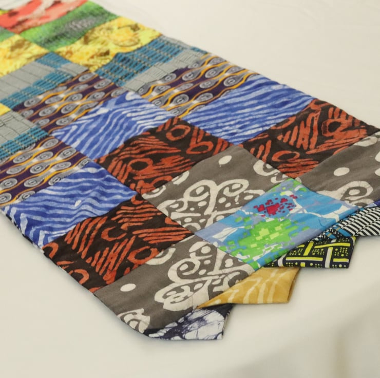 It has been made using a mix of handprinted Adire (Nigerian batik) and Ankara fabrics (printed wax fabrics) which together is a celebration of African textiles.