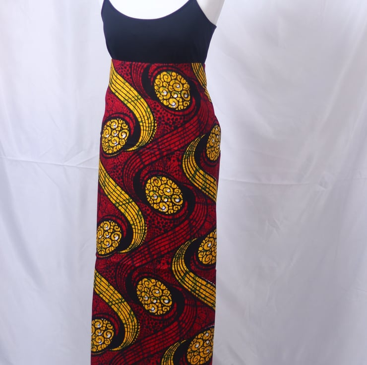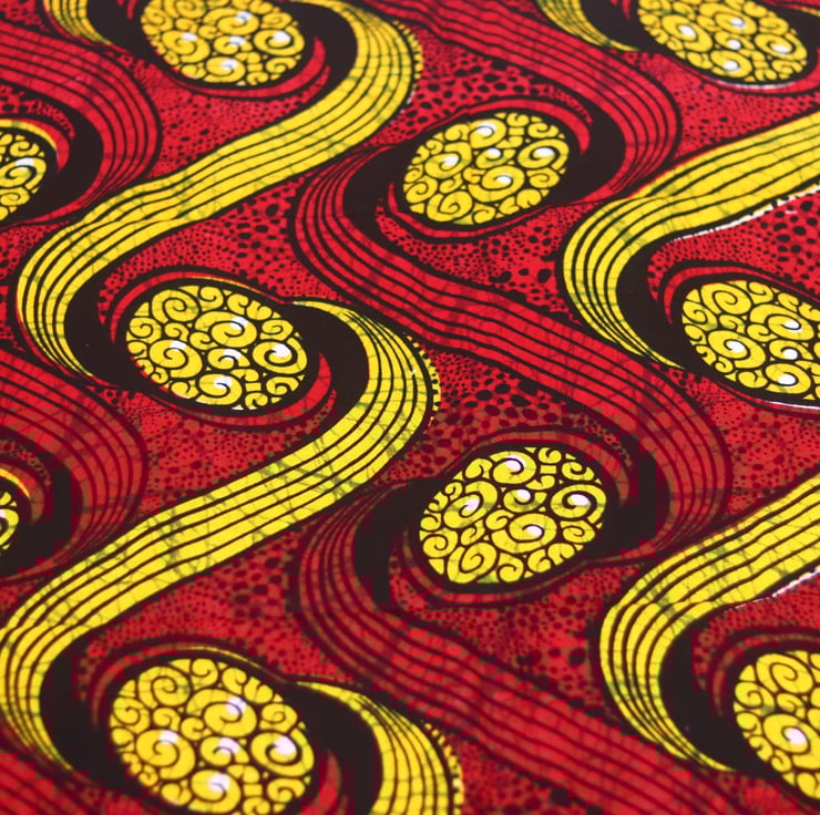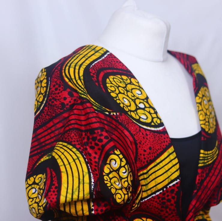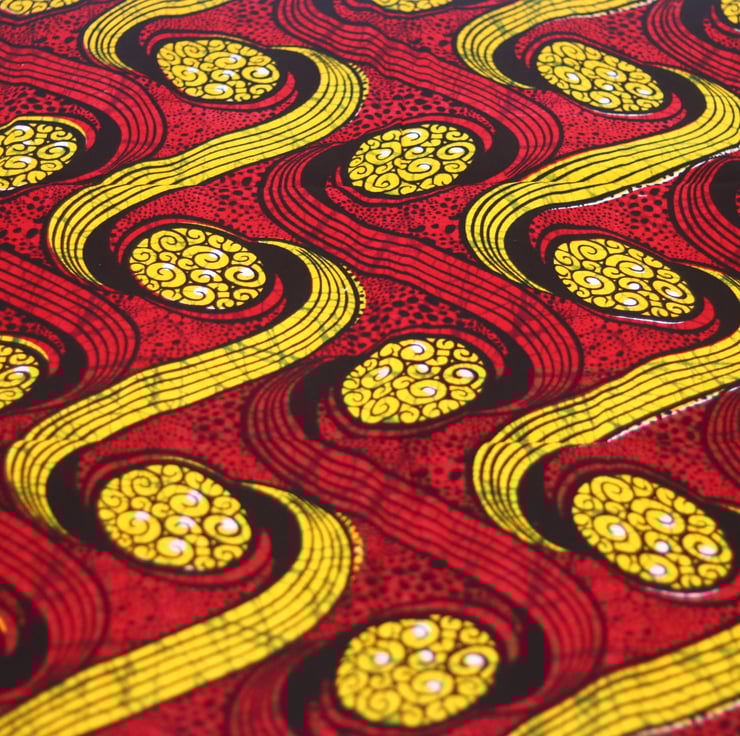 Fabric sold by the yard; this red geometric fabric multicoloured African Ankara fabric is very versatile and suitable for clothing (as illustrated), home decor and fashion accessories.