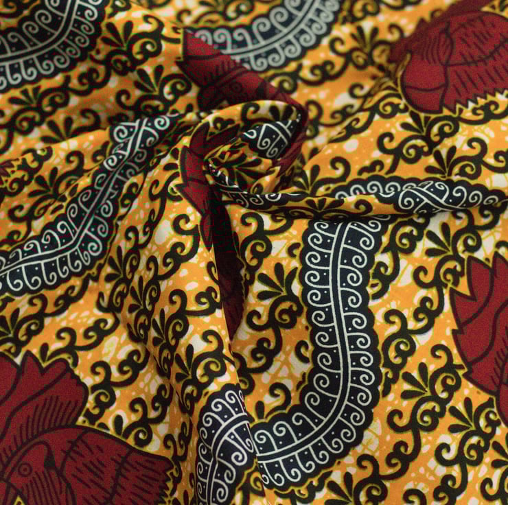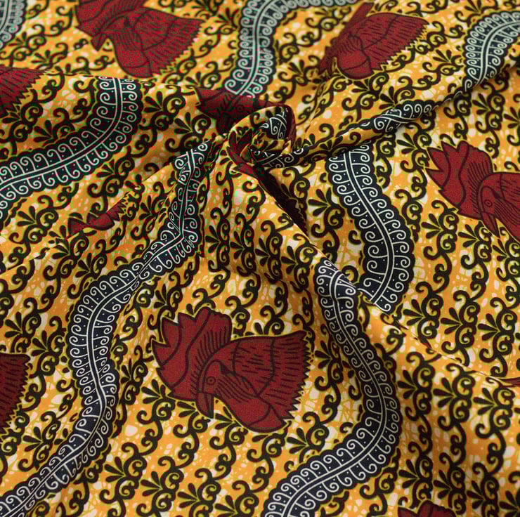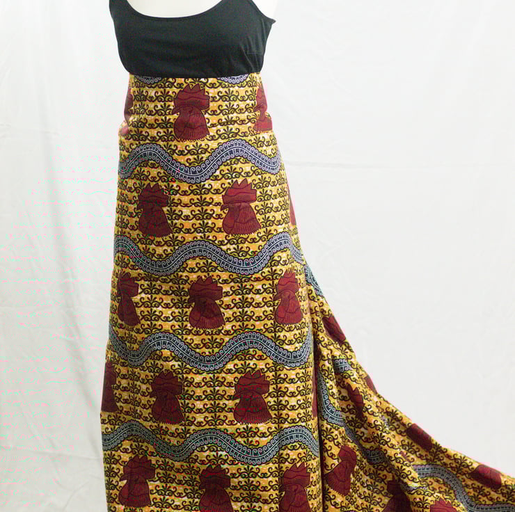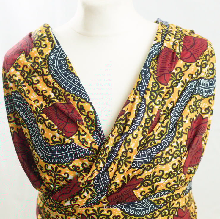 Fabric sold by the yard; this beautiful multi coloured African ankara fabric has charm. It is very versatile and suitable for clothing (as illustrated), home decor and fashionable accessories.