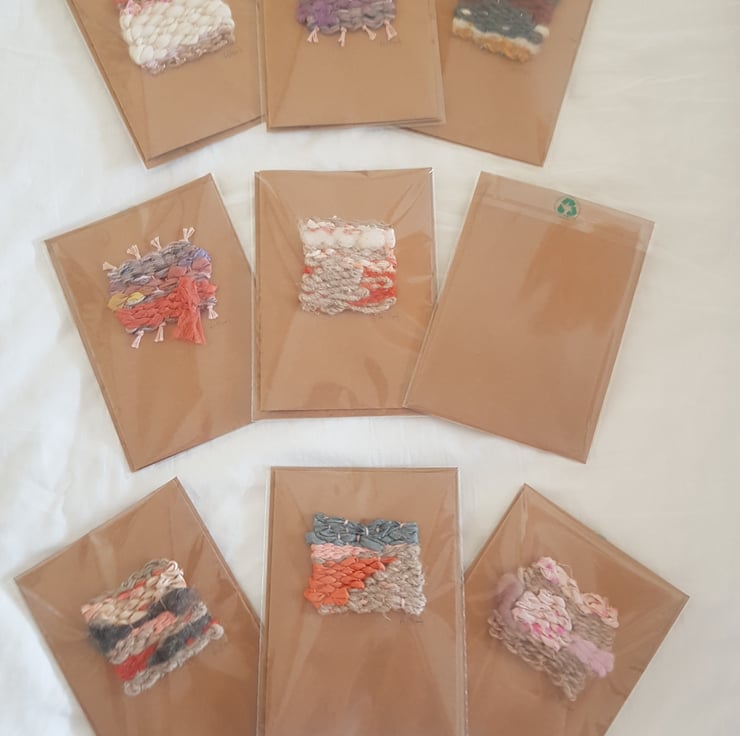 I have a passion for natural fibres and beautiful vintage and recycled natural fabrics. I wanted to use these materials to create some unique woven pieces. At the same time, I needed a special card that I had put my time and love into, for a close friend, and started creating these cards. They are all individual and made with love and care in Wales.