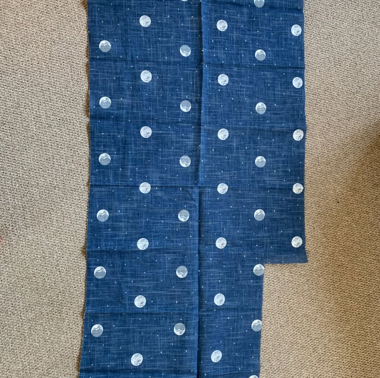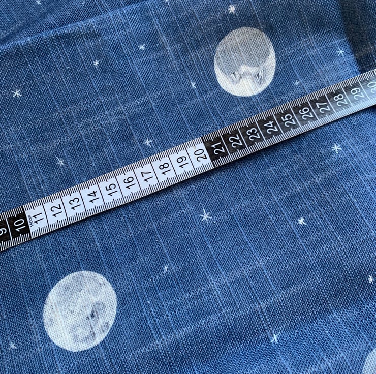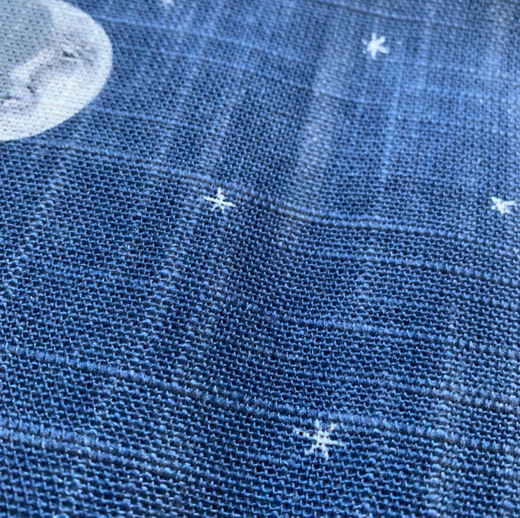 This fabric would be lovely for cushions or maybe a bag. The moons have lovely gentle faces and the background is a deep denim blue.