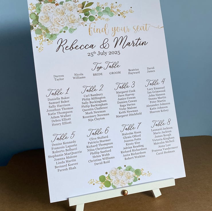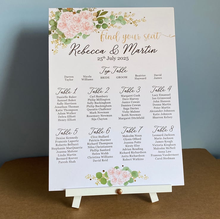 A1 Poster - table plan is printed on 220gsm ultra matt photo paper