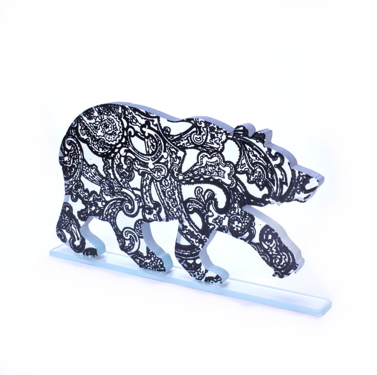 This bear is made from one piece of chunky 10mm thick clear float glass that has been cut to shape using a water jet cutting machine.