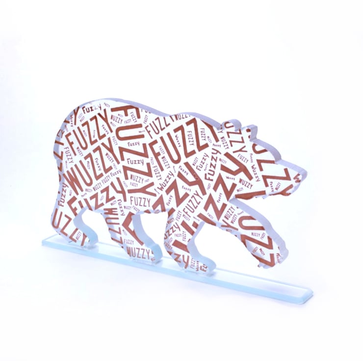 This bear is made from one piece of chunky 10mm thick clear float glass that has been cut to shape using a water jet cutting machine.