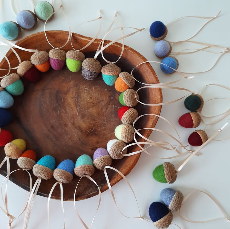 Welcome Autumn & Winter with our zero waste inspired natural acorn tops with luxurious, sustainable, colourful merino wool filling the space of the acorn.