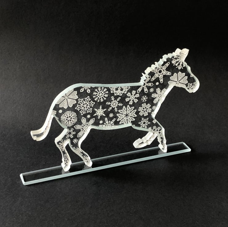I love creating flurries of snowflakes across my glass animals, especially the creatures that probably have never seen now in their lifetimes, like the glass zebras!