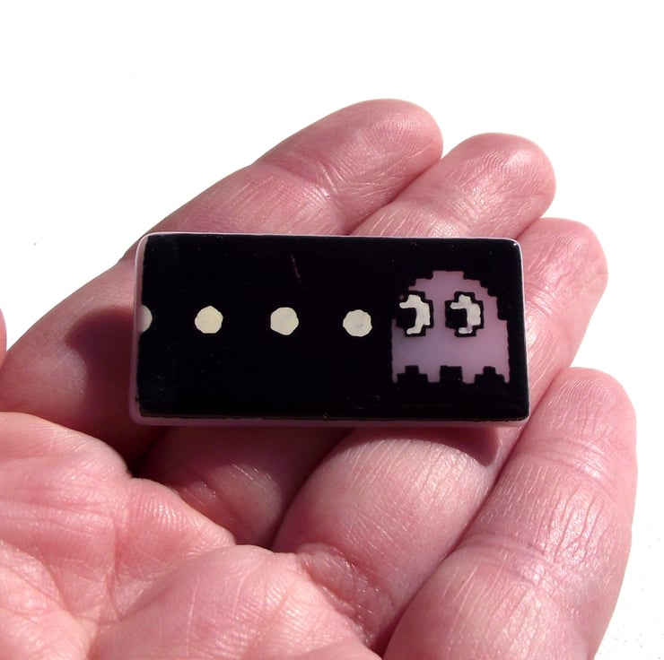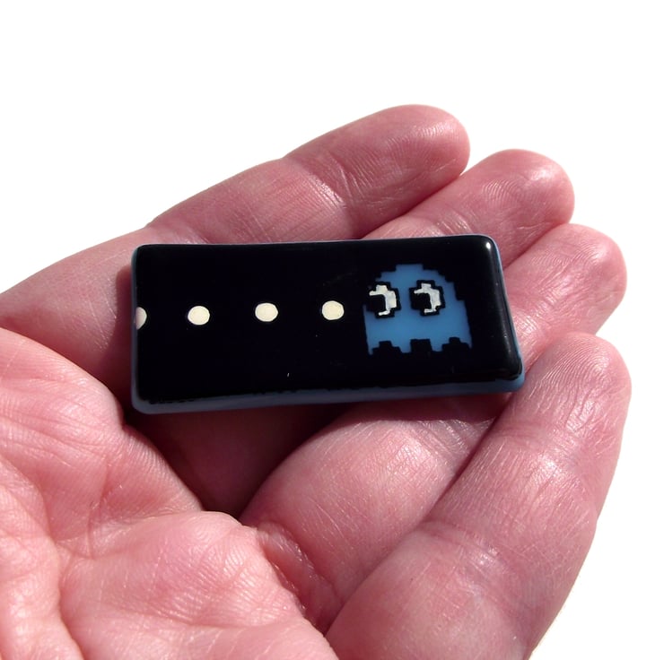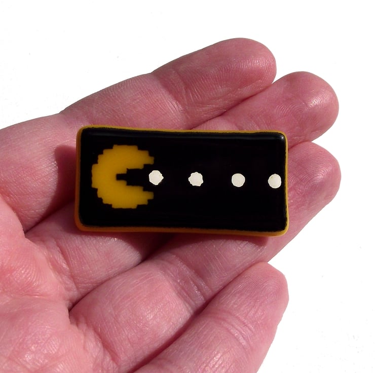 Inspired by the original 8-bit arcade game, these brooches use the characters from Pacman to chase across your lapel or bag!