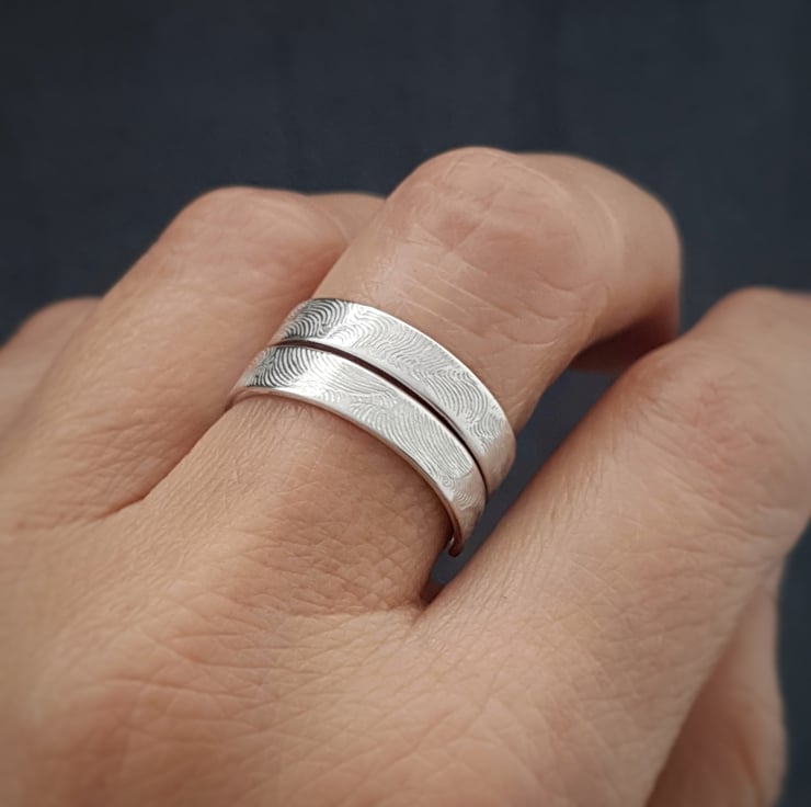 The ring stack consists of two rings each 6mm in width with 1mm thickness. They are 2mm wider than my last year's design. Available in sizes from O to S. When ordering please indicate the size you require otherwise they will come in size O as standard.