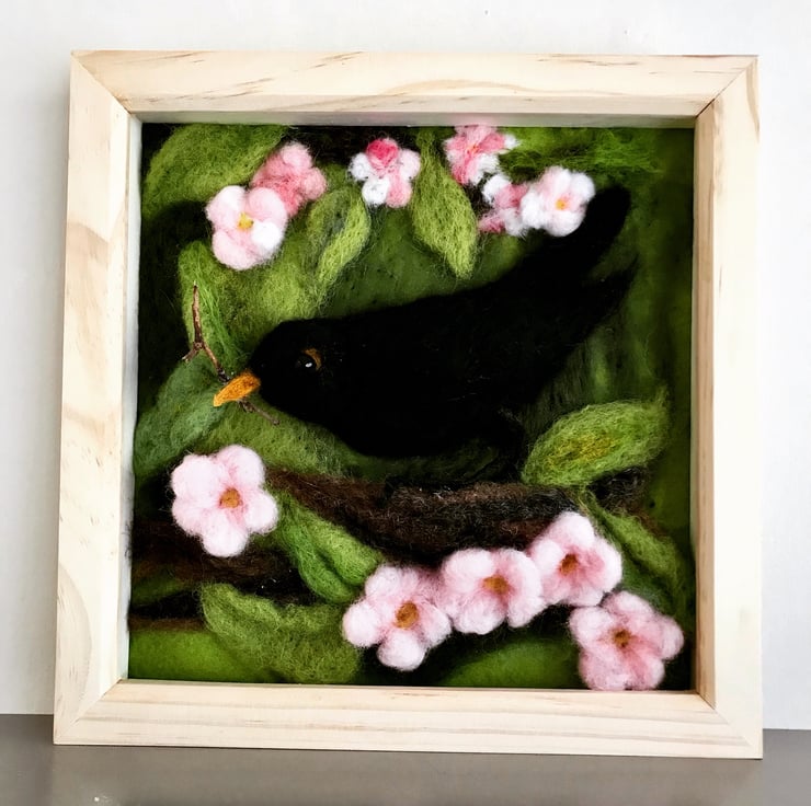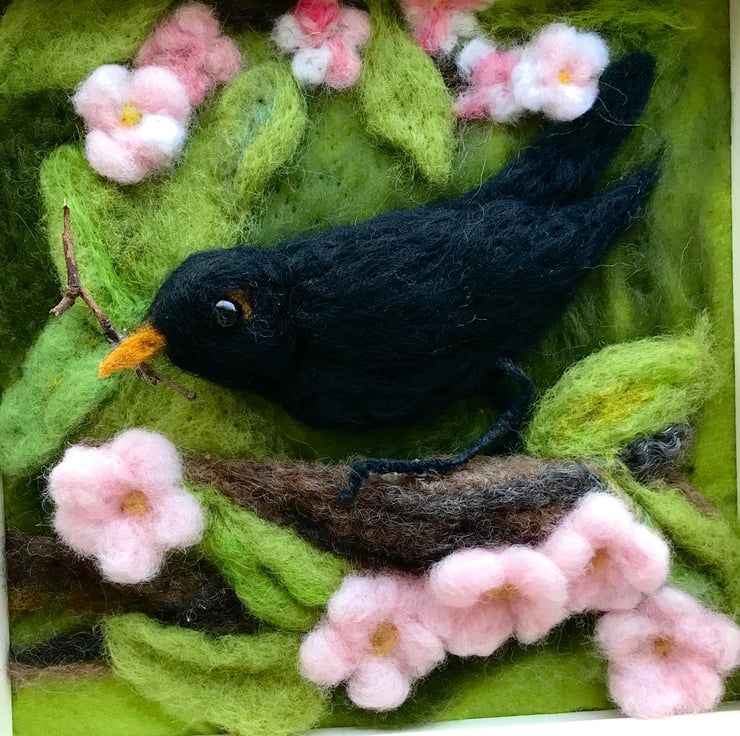 Bead eye and wire legs . Carefully felted to give a realistic appearance, and framed without glass .