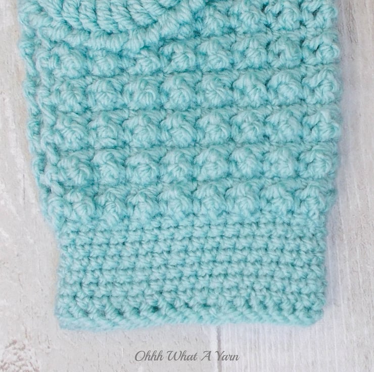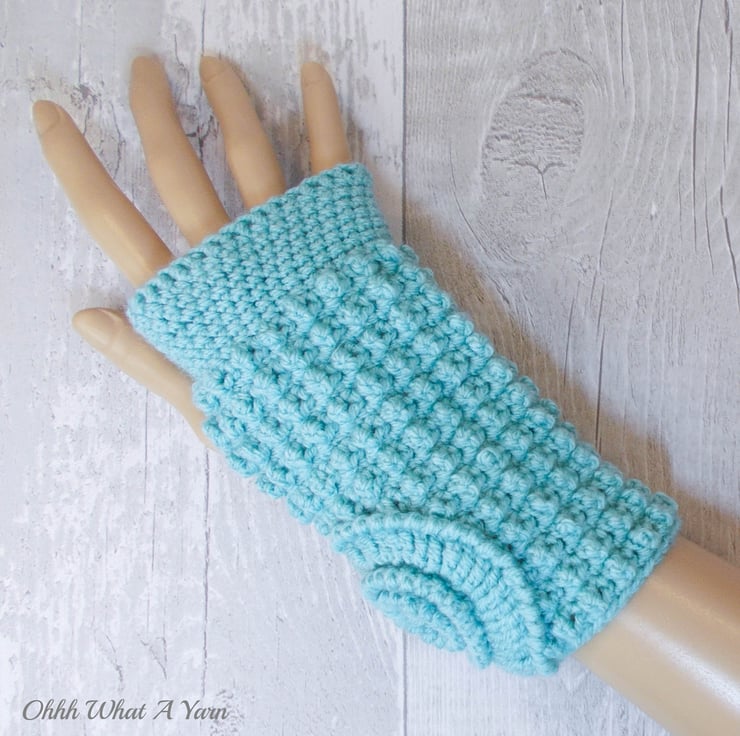 They have a gorgeous swirling ammonite detail on the wrist portion and a beautiful bobble stitch pattern to the main section of the gloves.