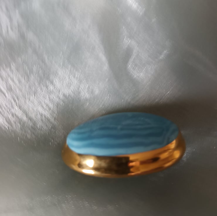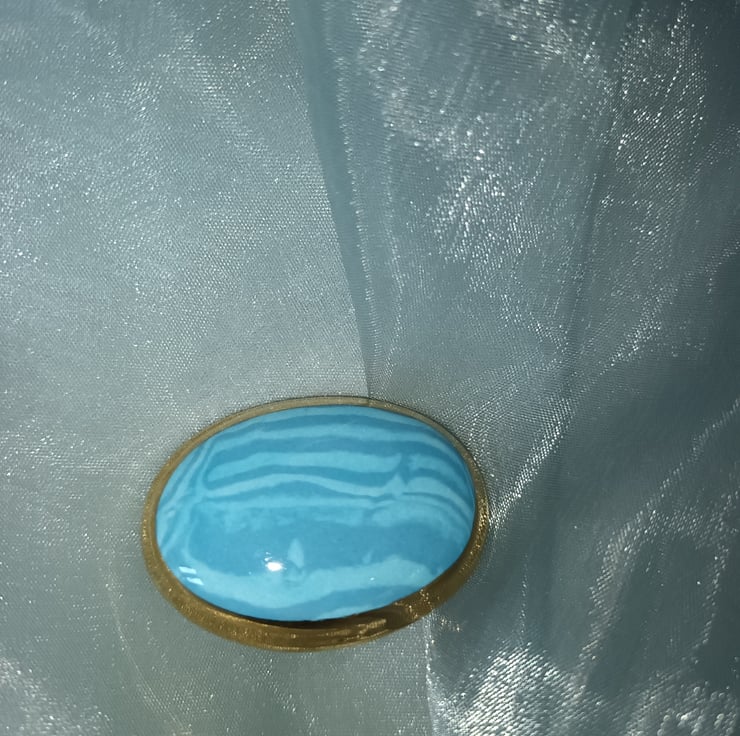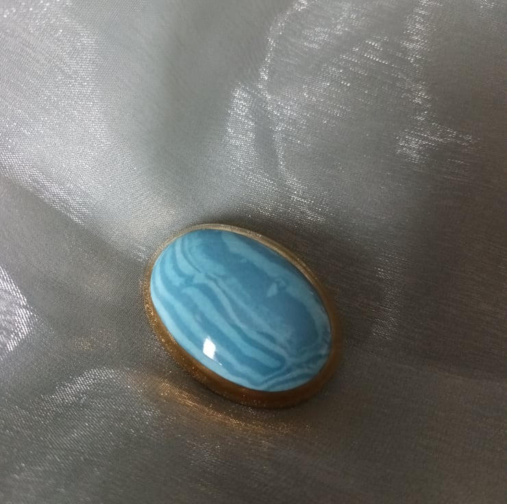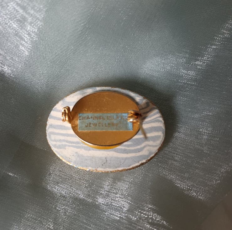 This blue ceramic Folk Art brooch from Channel Island Jewellery from the 1970s is simple but stunning in colour.