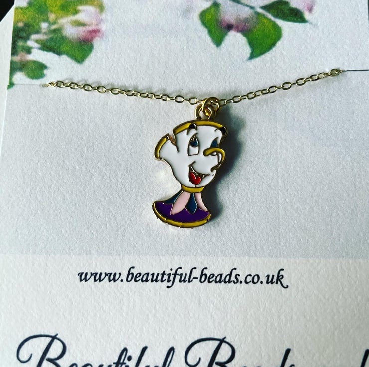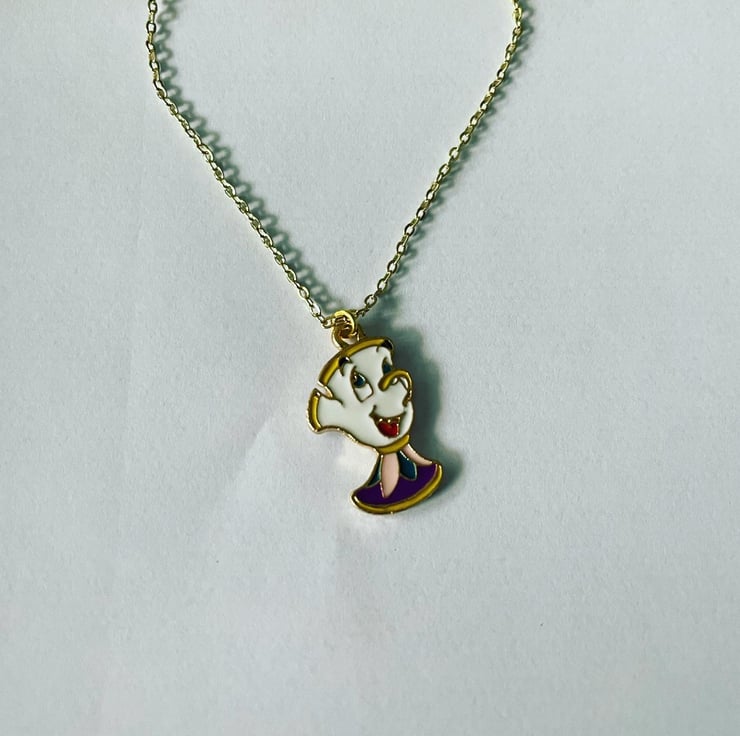 Curb chain necklace with chip charm pendant
