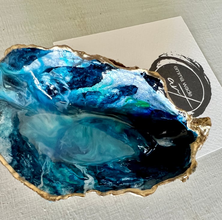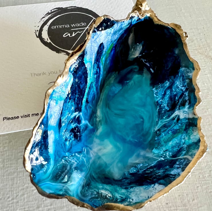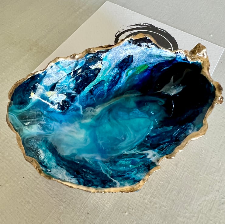 Ocean Vibes Blue 3. Hand painted Unique Marble Painted Dorset Oyster Shells using a mixture of poured and painted Acrylic Inks and Resins.