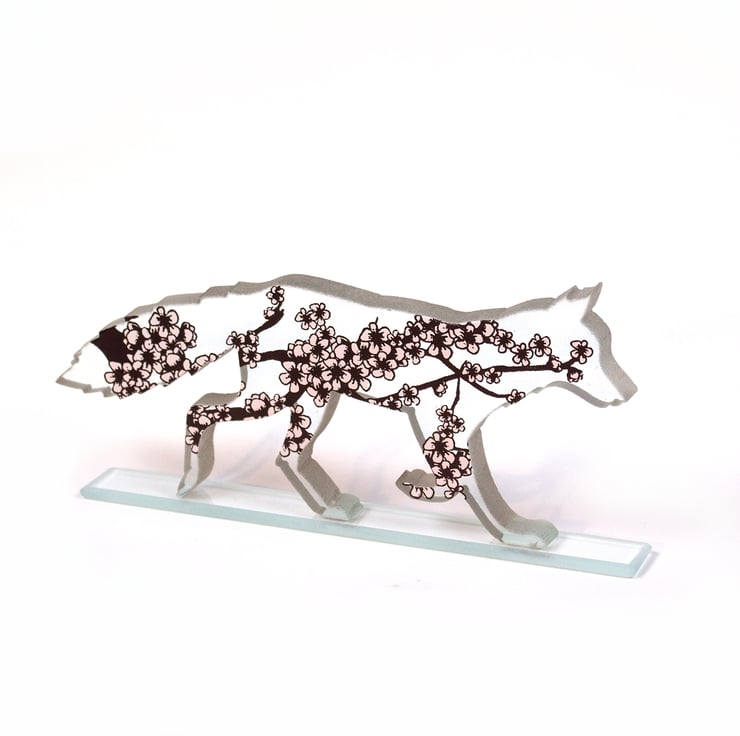 A delicate cherry blossom branch stretches over this foxy shape!