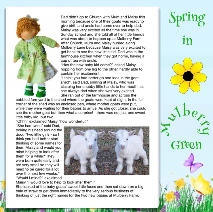 There are other children in Maisy’s class at school - Violet, Billy with his pet rabbit, Amber, Tilly, Rosie and her kittens, Amelia, Ruby, Marigold, Bobby with Max the dog, and the twins Oliver and Olivia, who have a puppy called Oscar. The dolls are all 26cm tall and baby Daisy is 16cm. Maisy and Mo love nothing more than having adventures with their friends. You can read about their adventures on my Facebook and Instagram pages - Maisy Muffin Rag Dolls and on my Mulberry Green Pinterest boards.