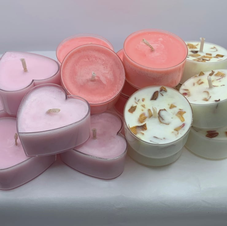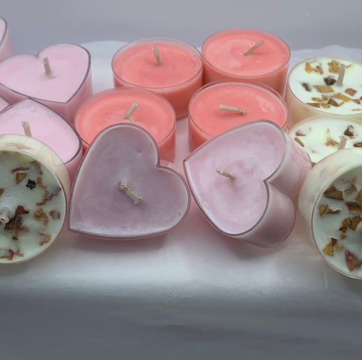 These tea lights are made of 100% soy wax and are scented with cherry Blossom essential oil. It’s a lovely floral scent a great alternative to stronger floral notes. These are white tealights and have been hand poured, decorated with dried rose petals. These tea lights are made of 100% soy wax and are scented with cherry Blossom essential oil.