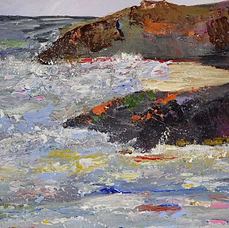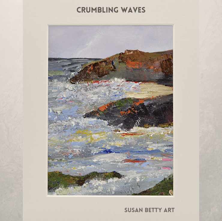 I live in the east coast of Scotland, near the sea. I wanted to depict the coast in stormy weather as the waves, crash and crumble on to the rocks. This artwork is called, "Crumbling Waves". This would make an ideal gift for any art lover or anyone who has a connection to the seas.