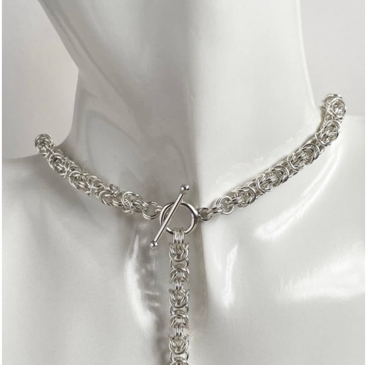 Sterling silver rings have been used to form the byzantine chainmaille chain.
