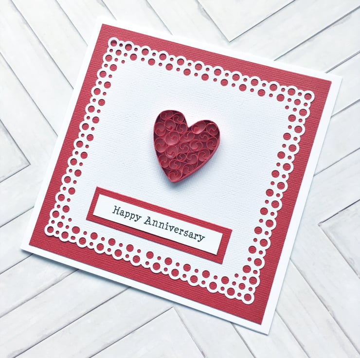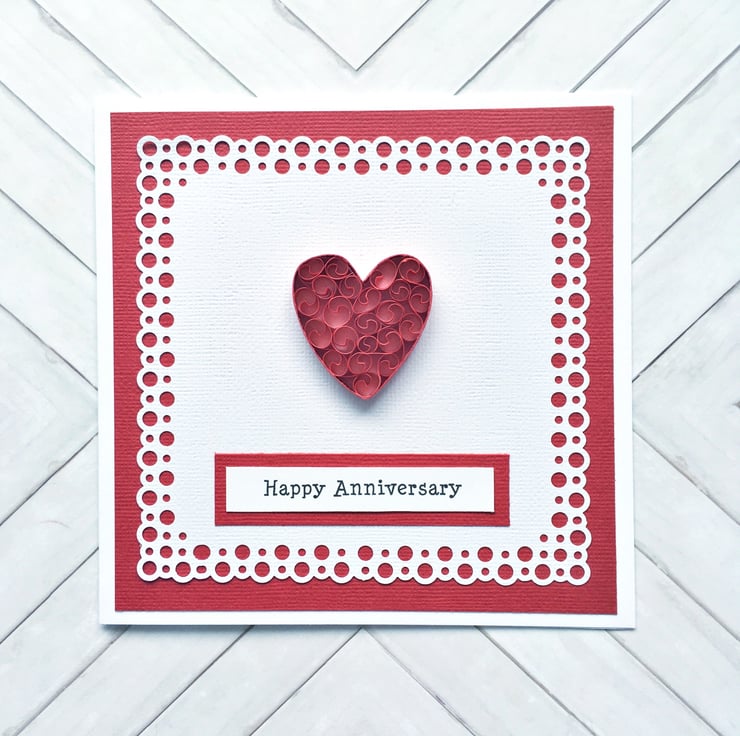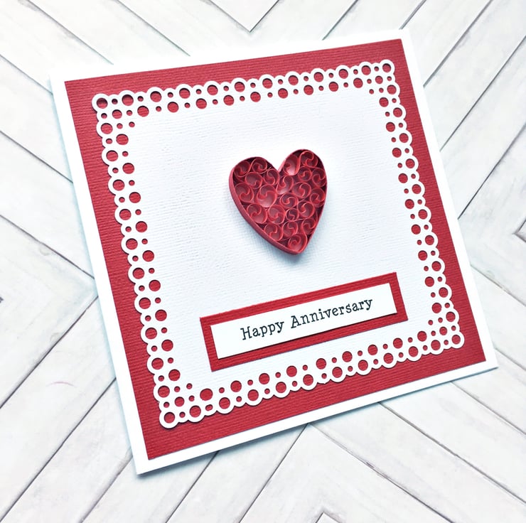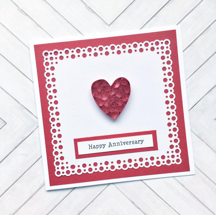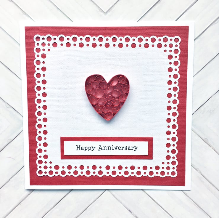 This adorable Anniversary card has a quilled heart in the centre and a gift box is also available for an extra special touch.
