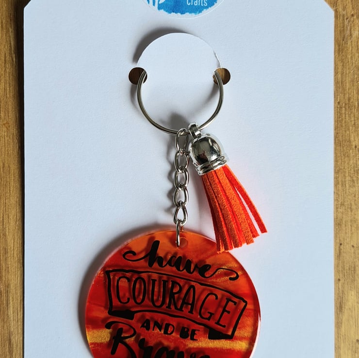 These keyrings are made from acrylic so they are hard wearing. The back is painted with blue, purple and white acrylic paint with the front made from permanent vinyl. The front and back are coated in UV resin to seal it preventing chips and the vinyl from peeling, increasing the life of the keyring. Comes with a coloured tassel to match the keyring colour.