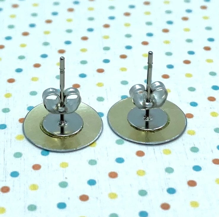 They measure 12mm in diameter and have steel ear posts with a butterfly fastening.