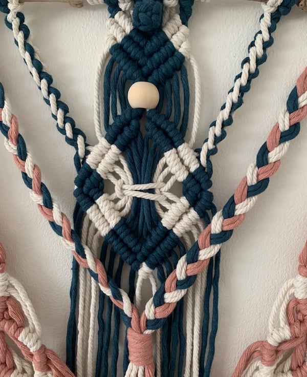 After creating many macrame pieces in natural colour cord, I was keen to use more richer colours inspired by my daughter's new home decor. I love how these colours work together and would bring a focal point to a range of colours within a room.