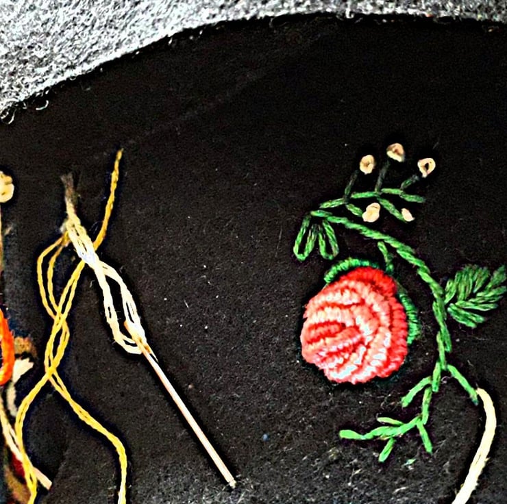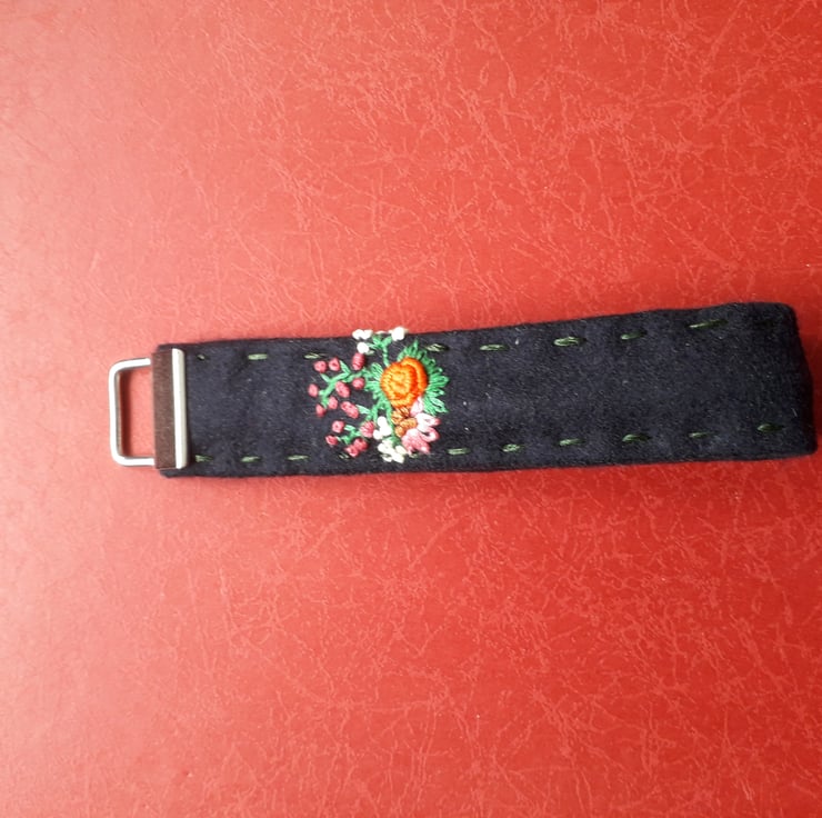 Dark blue pure soft wool fabric embroidered with rich flowers.