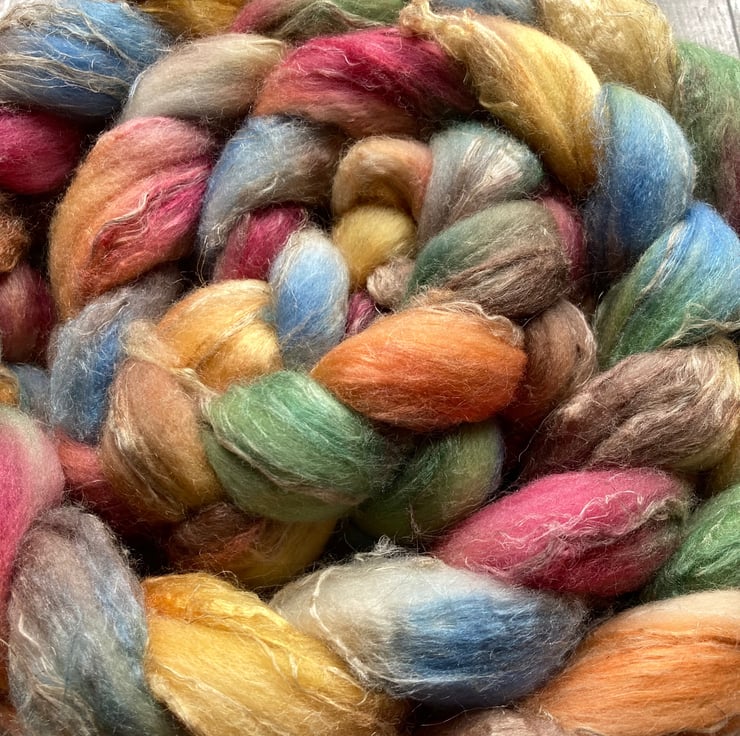 Approximately 100g hand dyed by me as shown.