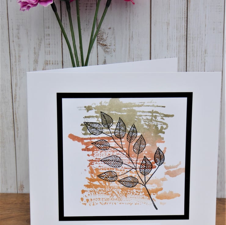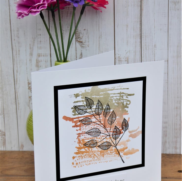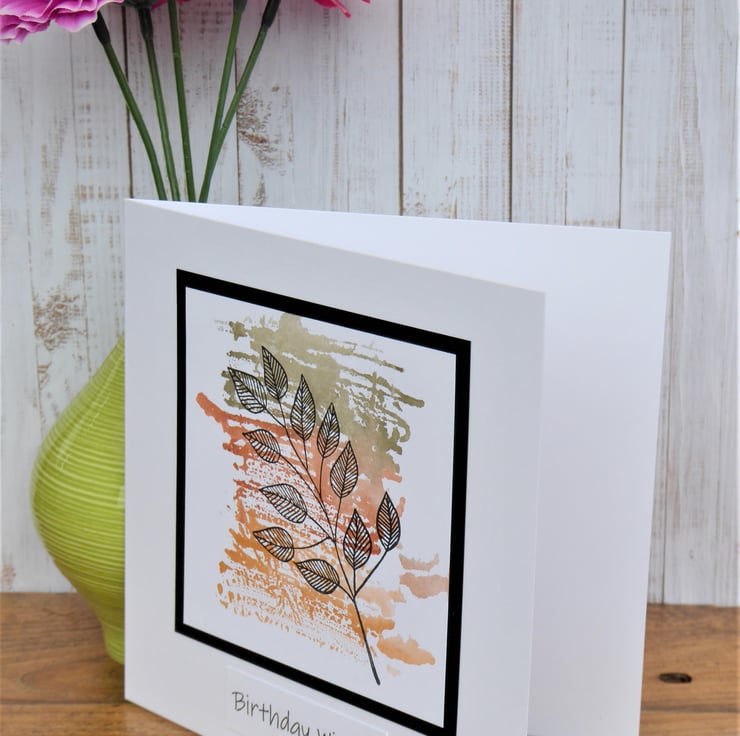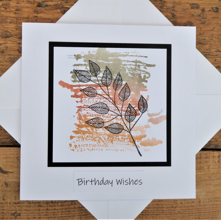Birthday Wishes card made from 300gsm white card - this has been painted, then stamped and layered up onto black card. Sentiment added.